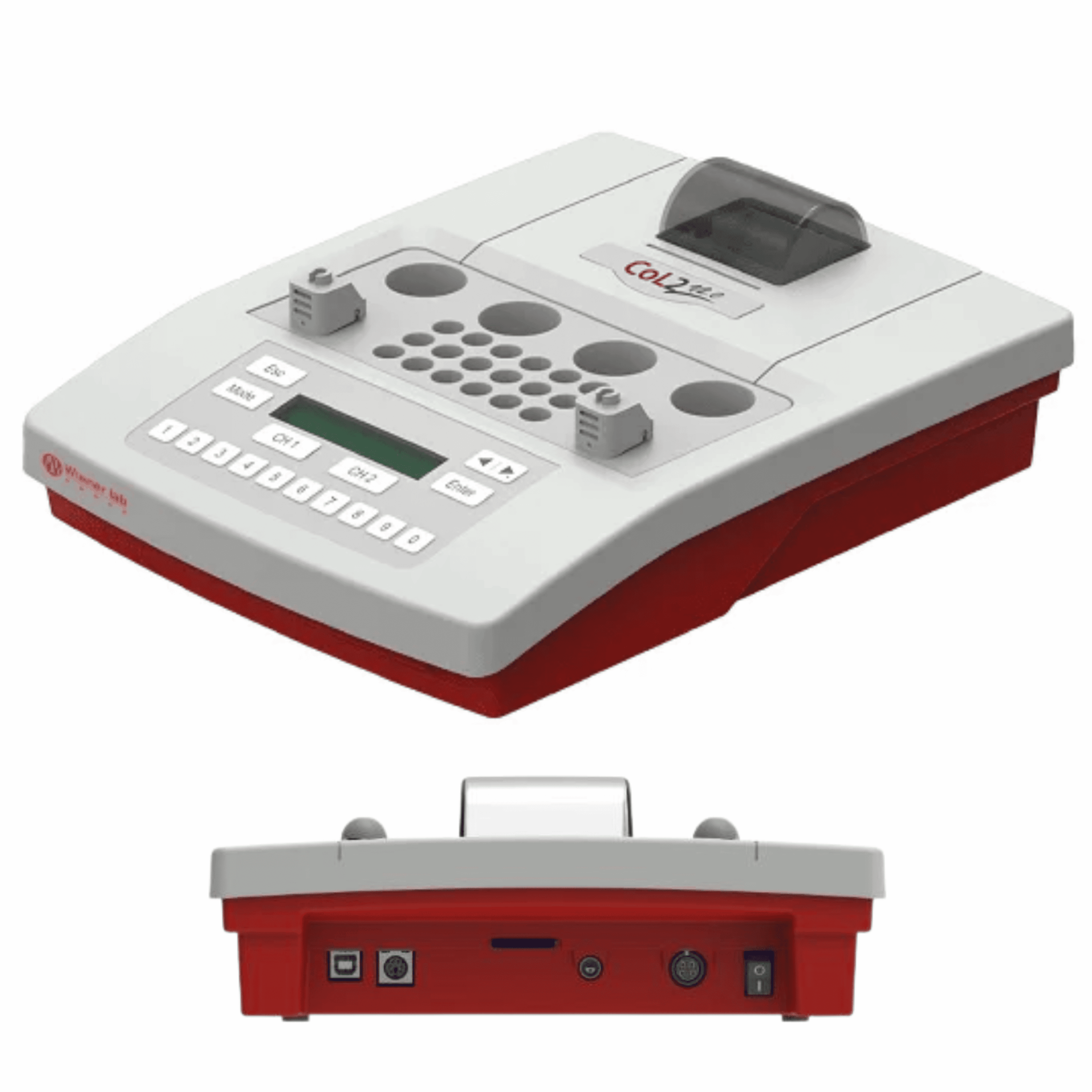Coagulómetro semiautomatizado Wiener Lab COL2 V.02 con detección óptica dual para análisis precisos de coagulación.